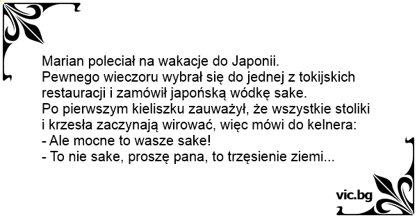 - To nie sake, proszę pana, to trzęsienie ziemi...