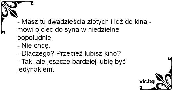 - Masz tu dwadzieścia złotych i idź do kina - mówi ojciec do syna w niedzielne popołudnie.