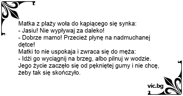 - Dobrze mamo! Przecież płynę na nadmuchanej dętce!
