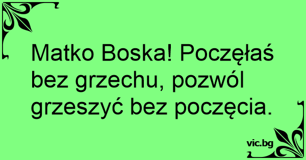 Matko Boska! Poczęłaś bez grzechu, pozwól grzeszyć bez poczęcia.