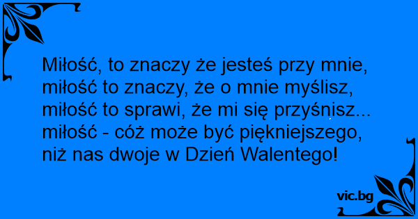 Miłość, to znaczy że jesteś przy mnie, miłość to znaczy, że o mnie myślisz, miłość to sprawi, że mi się przyśnisz... miłość - cóż może być piękniejszego, niż nas dwoje w Dzień Walentego!