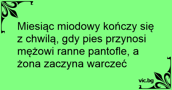 Miesiąc miodowy kończy się z chwilą, gdy pies przynosi mężowi ranne pantofle, a żona zaczyna warczeć