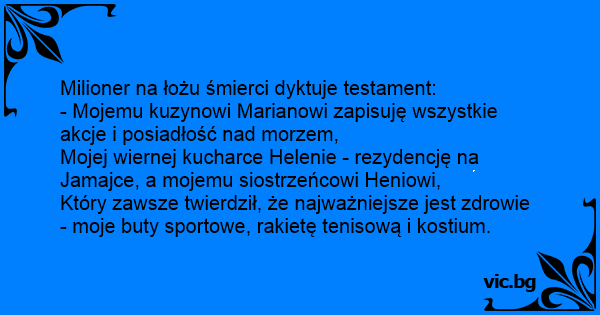 - Mojemu kuzynowi Marianowi zapisuję wszystkie akcje i posiadłość nаd morzem,