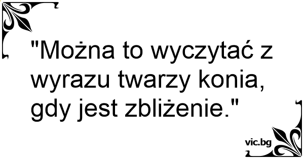 "Można to wyczytać z wyrazu twarzy konia, gdy jest zbliżenie."