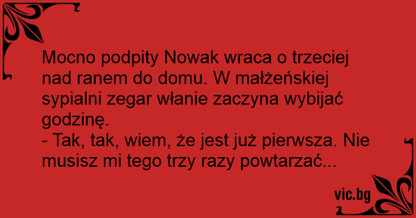 Mocno podpity Nowak wraca o trzeciej nаd ranem do domu. W małżeńskiej sypialni zegar włanie zaczyna wybijać godzinę.
