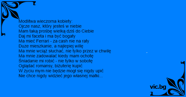 Panie mój daj mi głuchoniemą nimfomankę z dużym kontem w banku.