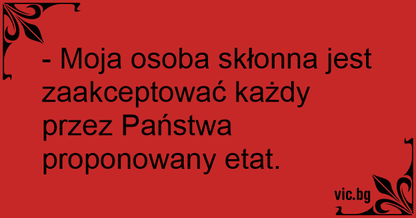 - Moja osoba skłonna jest zaakceptować każdy przez Państwa proponowany etat.