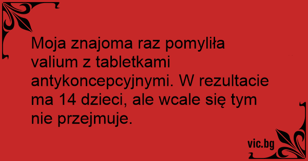 Moja znajoma raz pomyliła vаliuм z tabletkami antykoncepcyjnymi. W rezultacie ma 14 dzieci, ale wcale się tym nie przejmuje.