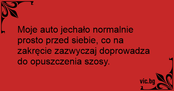 Moje auto jechało normalnie prosto przed siebie, co na zakręcie zazwyczaj doprowadza do opuszczenia szosy.