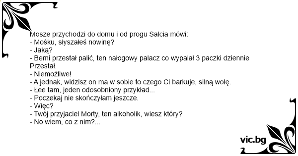 - Wiesz Mośku, Berni podobno znów zaczął palić.