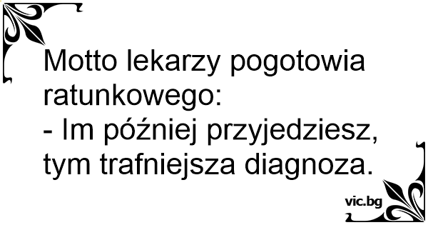 Motto lekarzy pogotowia ratunkowego:- Im później przyjedziesz, tym trafniejsza diagnoza. 28 0 0 Dowcipy o lekarzach