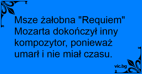 Msze żałobna "Requiem" Mozarta dokończył inny kompozytor, ponieważ umarł i nie miał czasu.