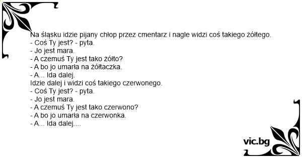 Na śląsku idzie pijany chłop przez cmentarz i nagle widzi coś takiego żółtego.