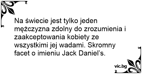 Na świecie jest tylko jeden mężczyzna zdolny do zrozumienia i zaakceptowania kobiety ze wszystkimi jej wadami. Skromny facet o imieniu Jack Daniel’s.
