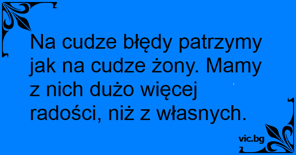 Na cudze błędy patrzymy jak na cudze żony. Mamy z nich dużo więcej radości, niż z własnych.