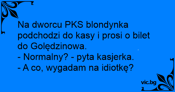 Na dworcu PKS blondynka podchodzi do kasy i prosi o bilet do Golędzinowa.
