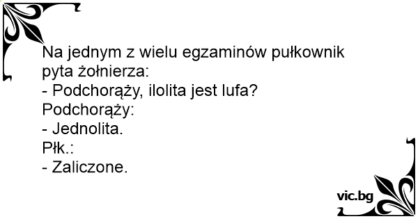Na jednym z wielu egzaminów pułkownik pyta żołnierza: