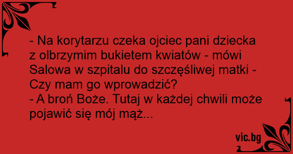 - Na korytarzu czeka ojciec pani dziecka z olbrzymim bukietem kwiatów - mówi