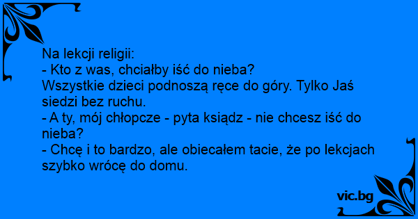 - A ty, mój chłopcze - pyta ksiądz - nie chcesz iść do nieba?