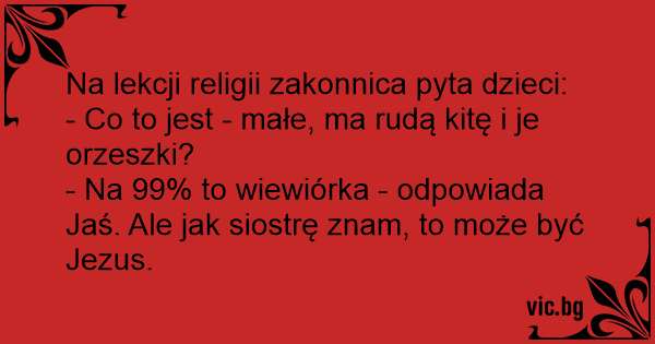 - Na 99% to wiewiórka - odpowiada Jaś. Ale jak siostrę znam, to może być Jezus.