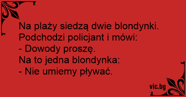 Na plaży siedzą dwie blondynki. Podchodzi policjant i mówi: