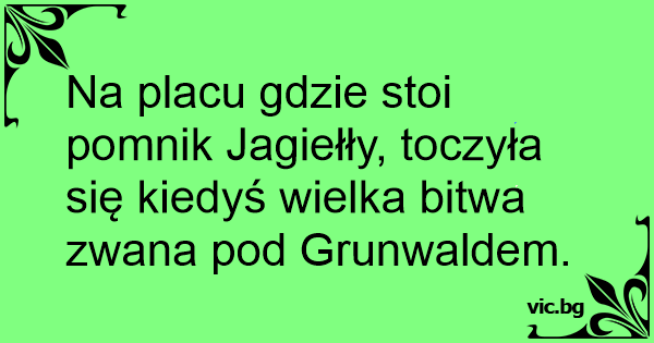 Na placu gdzie stoi pomnik Jagiełły, toczyła się kiedyś wielka bitwa zwana pod Grunwaldem.