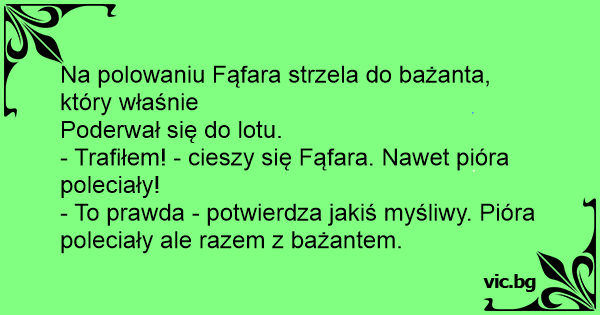 - To prawda - potwierdza jakiś myśliwy. Pióra poleciały ale razem z bażantem.
