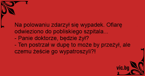 Na polowaniu zdarzył się wypadek. Ofiarę odwieziono do pobliskiego szpitala...