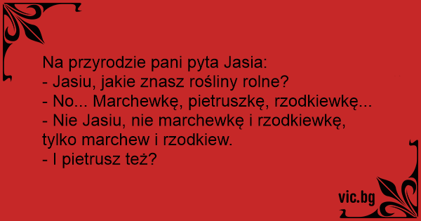- Nie Jasiu, nie marchewkę i rzodkiewkę, tylko marchew i rzodkiew.