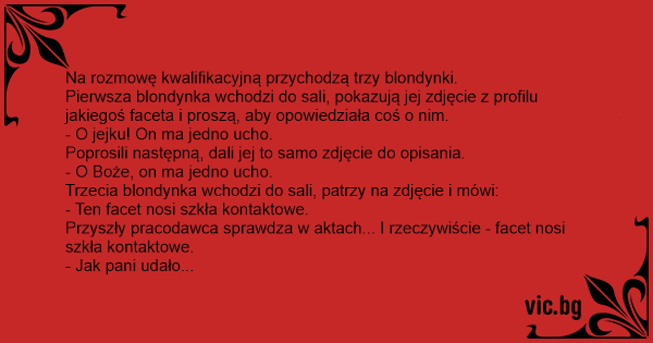 Na rozmowę kwalifikacyjną przychodzą trzy blondynki.