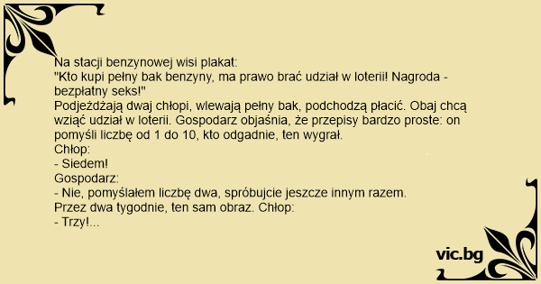 "Kto kupi pełny bak benzyny, ma prawo brać udział w loterii! Nagroda - bezpłatny sекs!"