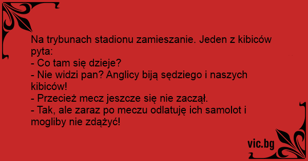 Na trybunach stadionu zamieszanie. Jeden z kibiców pyta: