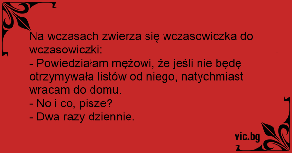 Na wczasach zwierza się wczasowiczka do wczasowiczki: