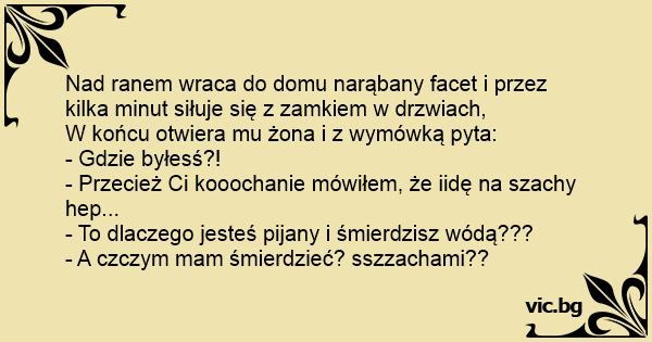 W końcu otwiera mu żona i z wymówką pyta: