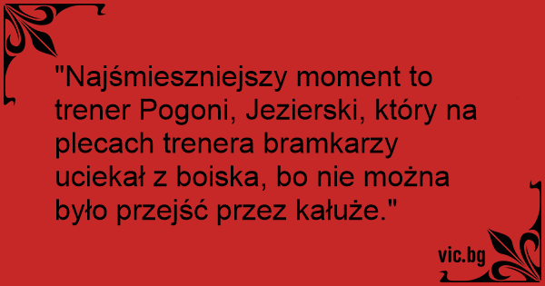 "Najśmieszniejszy moment to trener Pogoni, Jezierski, który na plecach trenera bramkarzy uciekał z boiska, bo nie można było przejść przez kałuże."