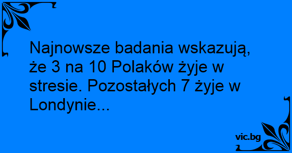 Najnowsze badania wskazują, że 3 na 10 Polaków żyje w stresie. Pozostałych 7 żyje w Londynie...