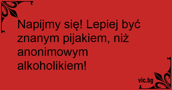 Napijmy się! Lepiej być znanym pijakiem, niż anonimowym alkoholikiem!