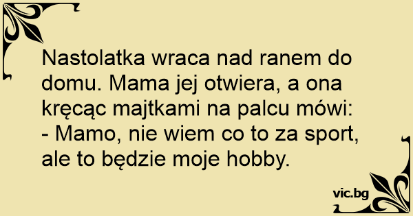 - Mamo, nie wiem co to za sport, ale to będzie moje hobby.
