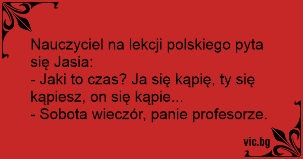Nauczyciel na lekcji polskiego pyta się Jasia: