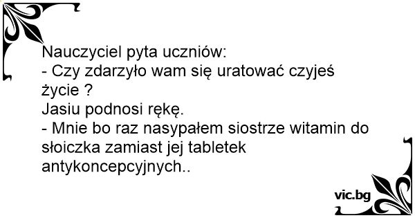 - Mnie bo raz nasypałem siostrze witamin do słoiczka zamiast jej tabletek antykoncepcyjnych..