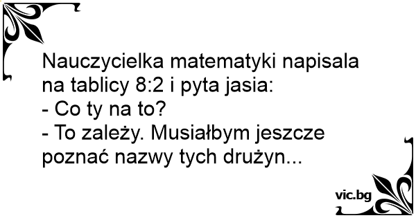 Nauczycielka matematyki napisala na tablicy 8:2 i pyta jasia: