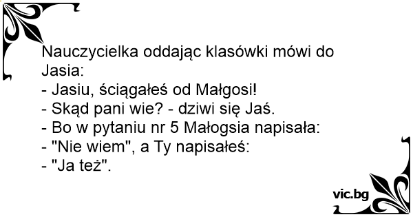 - Jasiu, ściągałeś od Małgosi!