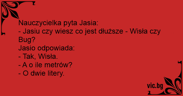 - Jasiu czy wiesz co jest dłuższe - Wisła czy Bug?