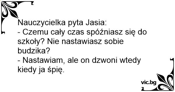 - Czemu cały czas spóźniasz się do szkoły? Nie nastawiasz sobie budzika?