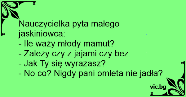 Nauczycielka pyta małego jaskiniowca: