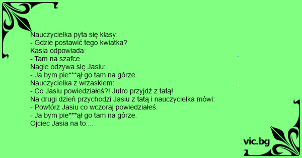 Na drugi dzień przychodzi Jasiu z tatą i nauczycielka mówi: