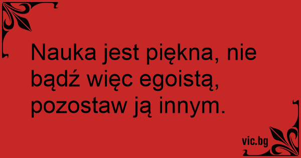 Nauka jest piękna, nie bądź więc egoistą, pozostaw ją innym.