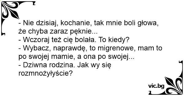 - Nie dzisiaj, kochanie, tak mnie boli głowa, że chyba zaraz pęknie...