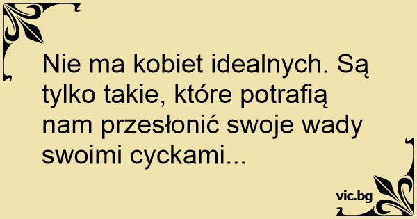 Nie ma kobiet idealnych. Są tylko takie, które potrafią nam przesłonić swoje wady swoimi cyckami...