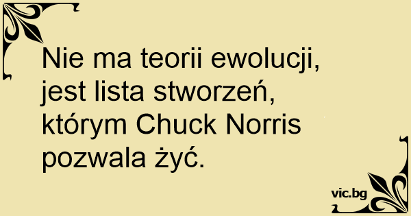 Nie ma teorii ewolucji, jest lista stworzeń, którym Chuck Norris pozwala żyć.